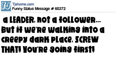 - # 80496 I'm a leader, not a follower.. Unless it's a dark place, then screw it, you're going first!