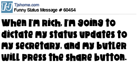 - # 65402 When I'm rich, I'm going to dictate my status updates to my secretary, and my butler will press that share button.