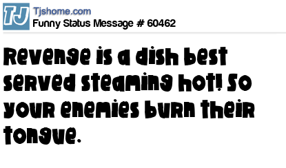 - # 103125 I disagree. Revenge is a dish best served so hot that it will burn your gizzards out.
