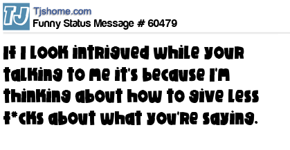 X If I look intrigued while your talking to me it's because I'm thinking about how to give less f*cks about what you're saying.