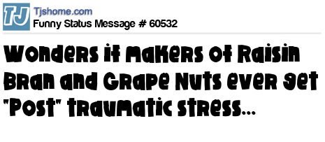 X wonders if makers of Raisin Bran and Grape Nuts ever get "Post" traumatic stress...