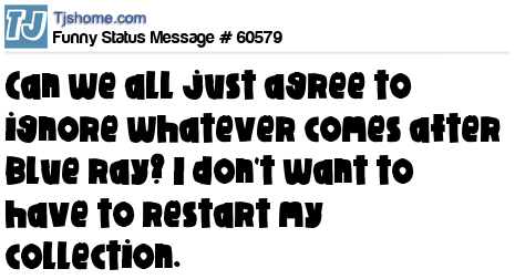 X is Can we all just agree to ignore whatever comes after Blue ray? I don't want to have to restart my collection.