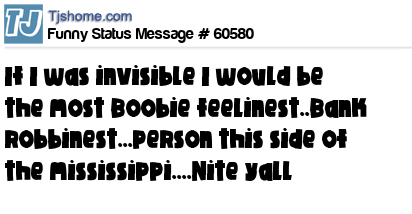 X If I was invisible I would be the most Boobie feelinest..Bank robbinest...person this side of the mississippi....Nite yall