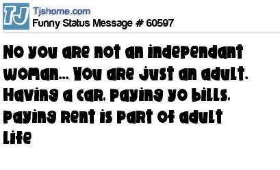 X is No you are not an independant woman... You are just an adult. Having a car, paying yo bills, paying rent is part of adult life