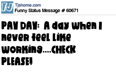 X is PAY DAY: A day when I never feel like working....CHECK PLEASE!
