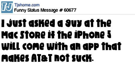 X I just asked a guy at the Mac Store if the iPhone 5 will come with an app that makes AT&T not suck.