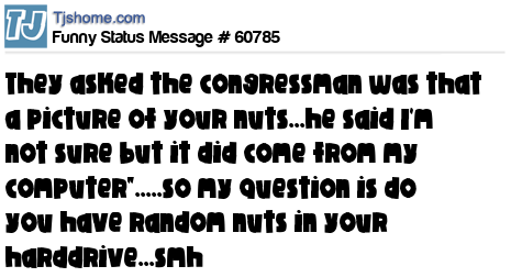 X says They asked the congressman was that a picture of your nuts...he said I'm not sure but it did come from my computer".....so my question is do you have random nuts in your harddrive...smh