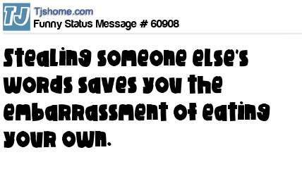 X is Stealing someone else's words saves you the embarrassment of eating your own.