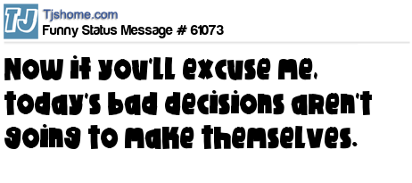 - # 188289 Now if you will excuse me, today's bad decisions aren't going to make themselves.