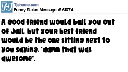 - # 86242 Good friends will bail you out of jail. Best friends will be sitting in the cell with you, laughing about how awesome that just was.