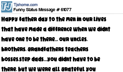 X Happy father day to the men in our lives that have made a diffrence when we didnt have one to be there.., our uncles, brothers, grandfathers teachers bosses,step dads...you didnt have to be there, but we were all grateful you were.