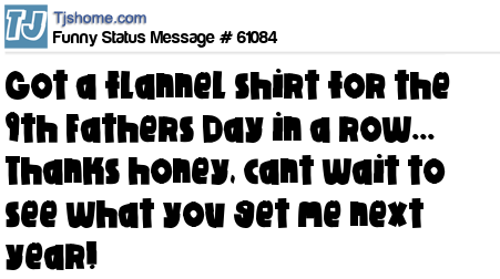 X Got a flannel shirt for the 9th Fathers Day in a row... Thanks honey, cant wait to see what you get me next year!