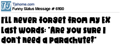X is I'll never forget from my EX last words: "Are you sure I don't need a parachute?"