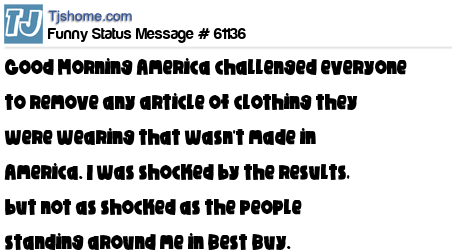 X Good Morning America challenged everyone to remove any article of clothing they were wearing that wasn't made in America. I was shocked by the results, but not as shocked as the people standing around me in Best Buy.