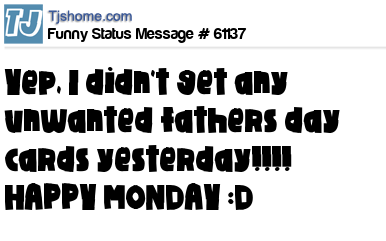 X Yep, I didn't get any unwanted fathers day cards yesterday!!!! HAPPY MONDAY :D