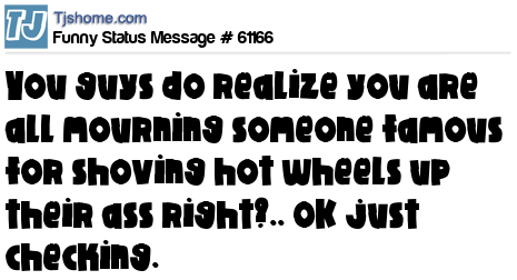 X You guys do realize you are all mourning someone famous for shoving hot wheels up their ass right?.. OK just checking.