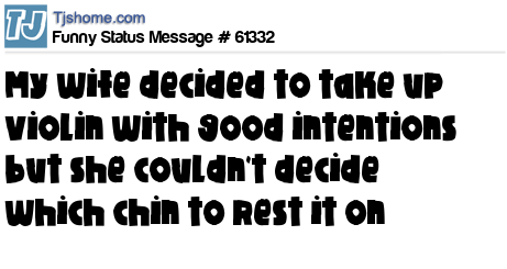 X is My wife decided to take up violin with good intentions but she couldn't decide which chin to rest it on