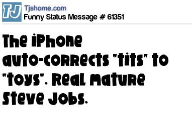 X is The iPhone auto-corrects "tits" to "toys". Real mature Steve Jobs.
