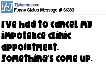 X I've had to cancel my impotence clinic appointment. Something's come up.