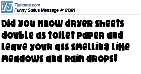 X is Did you know dryer sheets double as toilet paper and leave your ass smelling like meadows and rain drops?