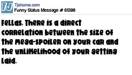 X is Fellas, There is a direct correlation between the size of the mega-spoiler on your car and the unlikelihood of your getting laid.