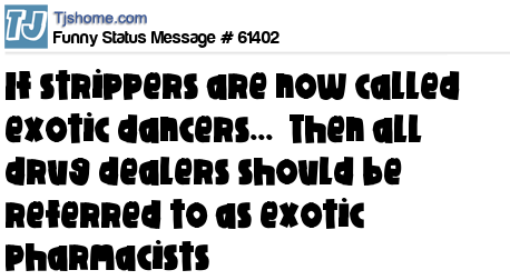 - # 124442 If strippers are now called exotic dancers then drug dealers should be called exotic pharmacist