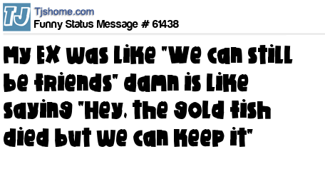 X is My EX was like "We can still be friends" damn is like saying "Hey, the gold fish died but we can keep it"