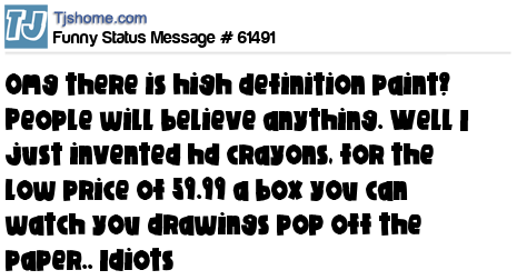 X is Omg there is high definition paint? People will believe anything. Well I just invented hd crayons, for the low price of 59.99 a box you can watch you drawings pop off the paper.. Idiots