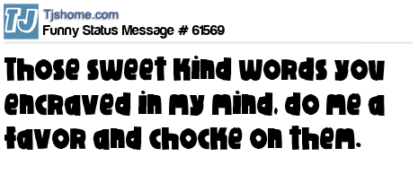 X those sweet kind words you encraved in my mind, do me a favor and chocke on them.