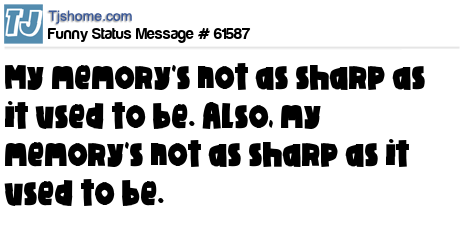 X says My memory's not as sharp as it used to be. Also, my memory's not as sharp as it used to be.