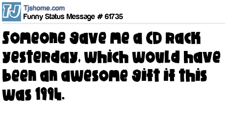 X Someone gave me a CD rack yesterday, which would have been an awesome gift if this was 1994.