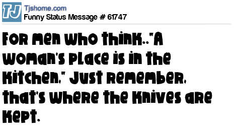 - # 145520 For men who think.."A women's place is in the kitchen," Just remember, that's where the Knives are kept!