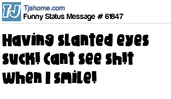 X says Having slanted eyes suck! Cant see sh!t when I smile!