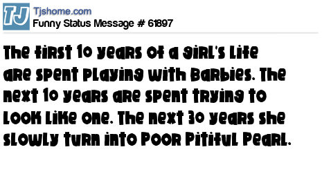 - # 61879 The first 10 years of a girl's life are spent playing with Barbies. The next 10 years are spent trying to look like one.