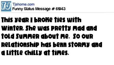 X is This year I broke ties with Winter, She was pretty mad and told Summer about me. So our relationship has benn stormy and a little chilly at times.