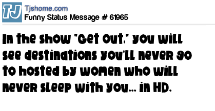 X In the show "Get Out," you will see destinations you'll never go to hosted by women who will never sleep with you... in HD.