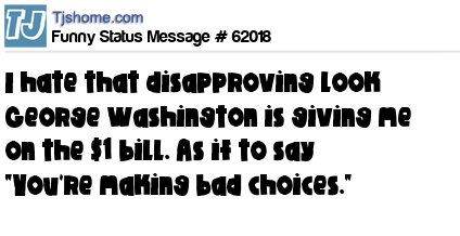 X I hate that disapproving look George Washington is giving me on the $1 bill. As if to say "You're making bad choices."