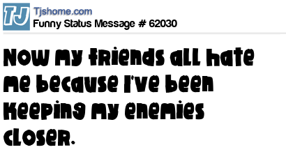- # 87520 Now my friends all hate me because I've been keeping my enemies closer.