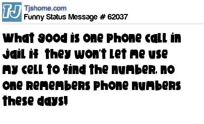 X What good is one phone call in jail if they won't let me use my cell to find the number, no one remembers phone numbers these days!