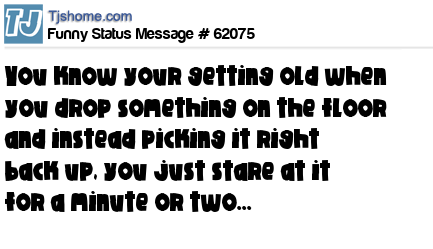 X says You know your getting old when you drop something on the floor and instead picking it right back up, you just stare at it for a minute or two...
