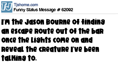 X I'm the Jason Bourne of finding an escape route out of the bar once the lights come on and reveal the creature I've been talking to.