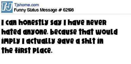 X i can honestly say I have never hated anyone, because that would imply I actually gave a shlt in the first place.