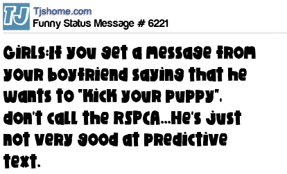 - # 21863 don't call the RSPCA if your boyfriend sends you the text 'i want to kick your puppy'......he's just using predictive text
