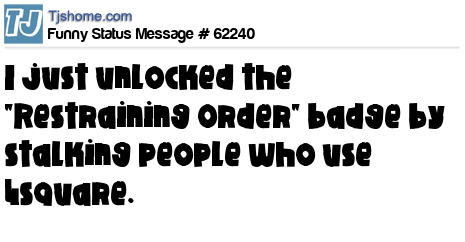X I just unlocked the "Restraining Order" badge by stalking people who use 4square.