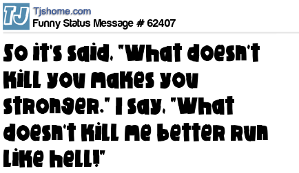 - # 48007 the saying "what doesn't kill you makes you stronger" isn't always true: things don't always make you STRONGER, they just didn't KILL YOU.