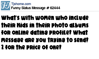 X is what's with women who include their kids in their photo albums for online dating profile? What message are you trying to send? 2 for the price of one?