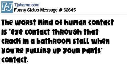 X is The worst kind of human contact is "eye contact through that crack in a bathroom stall when you're pulling up your pants" contact.