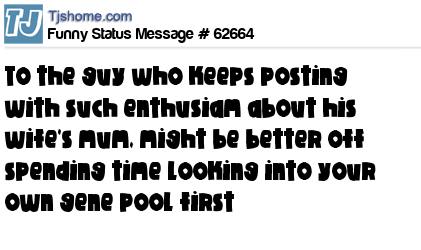 X says to the guy who keeps posting with such enthusiam about his wife's mum, might be better off spending time looking into your own gene pool first