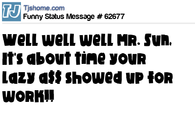 X says Well well well Mr. Sun, It's about time your lazy a$$ showed up for work!!