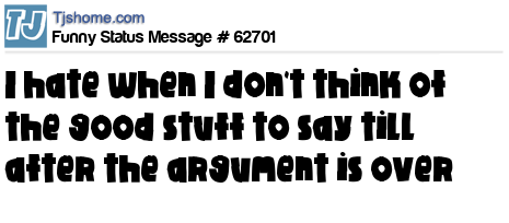 X says I hate when I don't think of the good stuff to say till after the argument is over